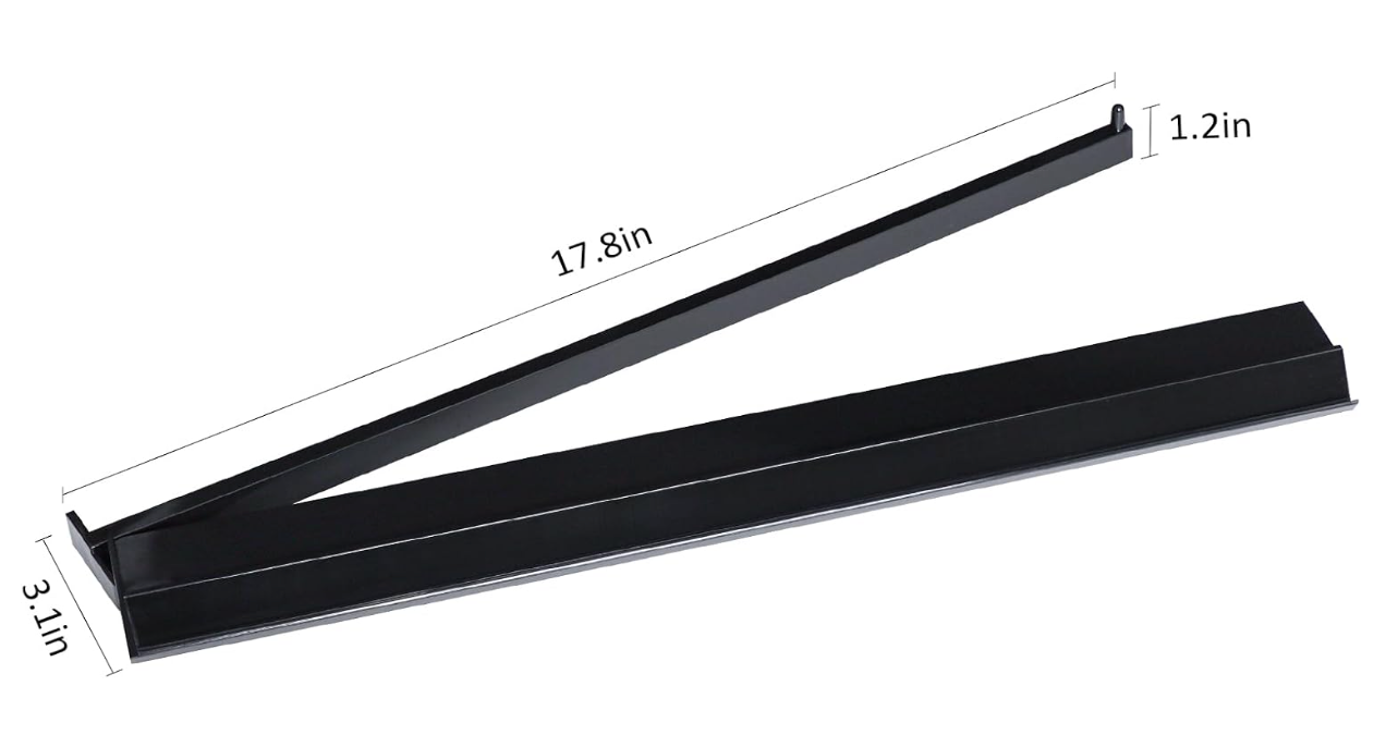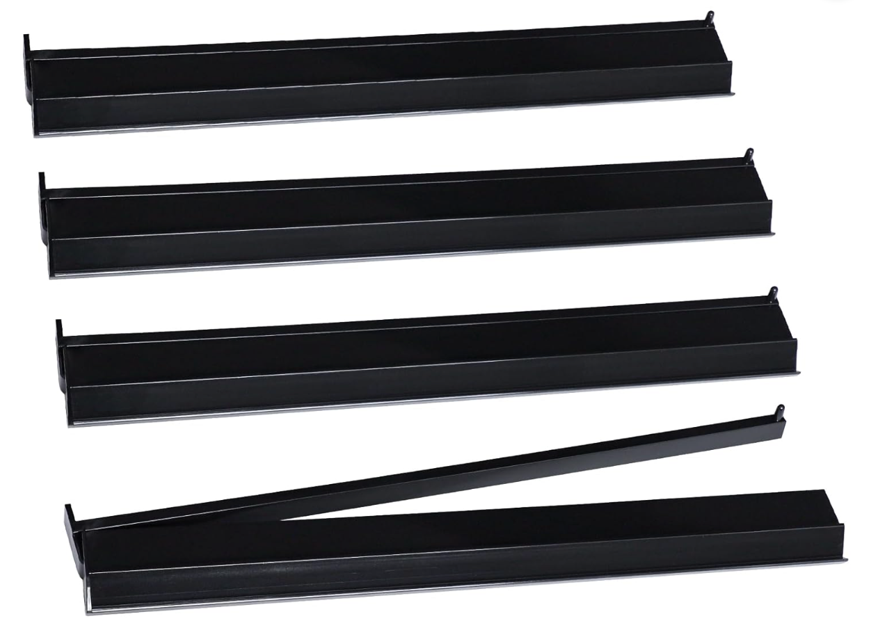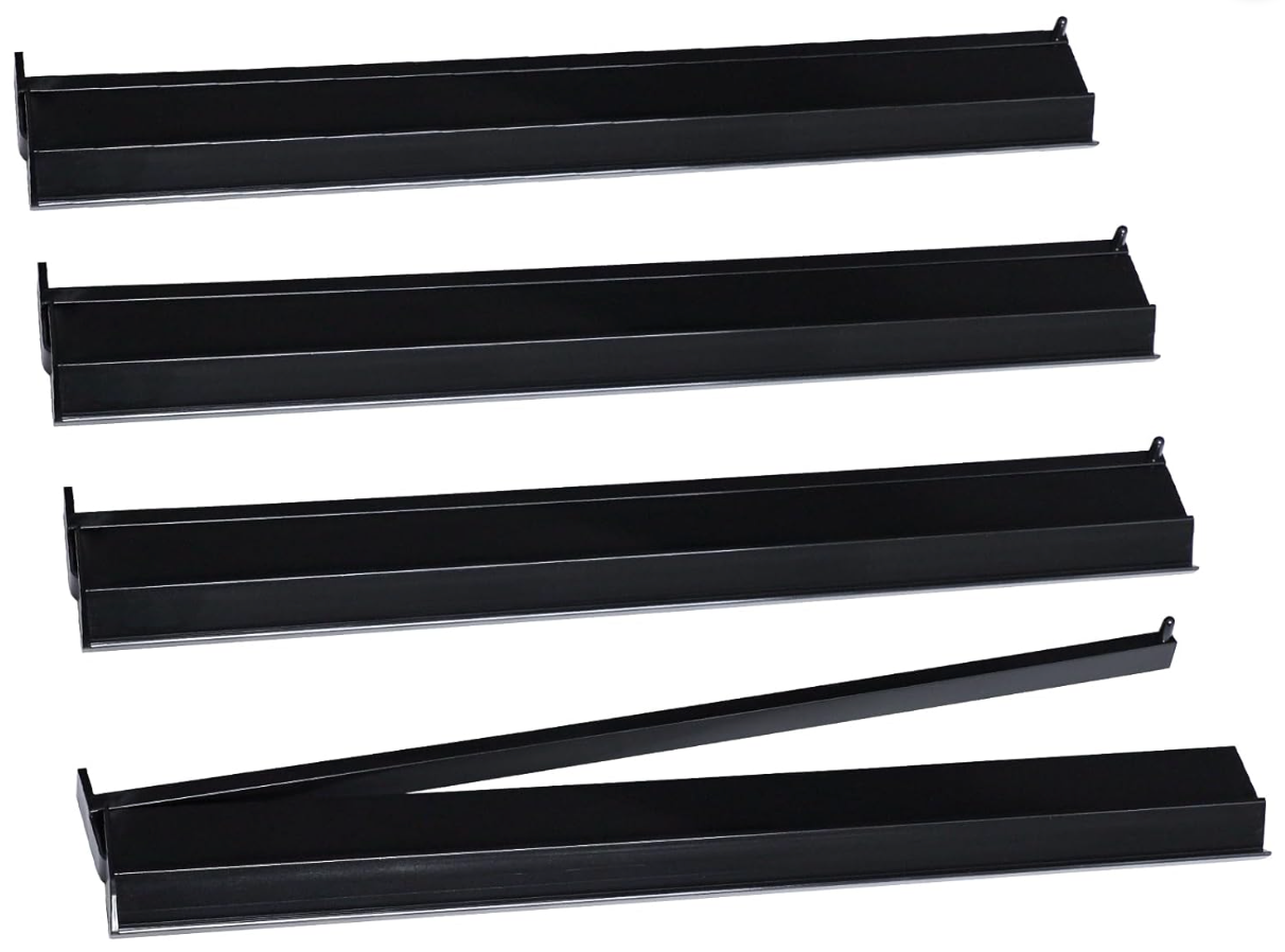 Black rack and pusher set made of high quality plastic, each measuring 17.8 x 3.1 x 1.2 inches, suitable for American Mahjong tiles (1.2”). The pushers are permanently attached to the racks, eliminating the need for assembly or disassembly.
